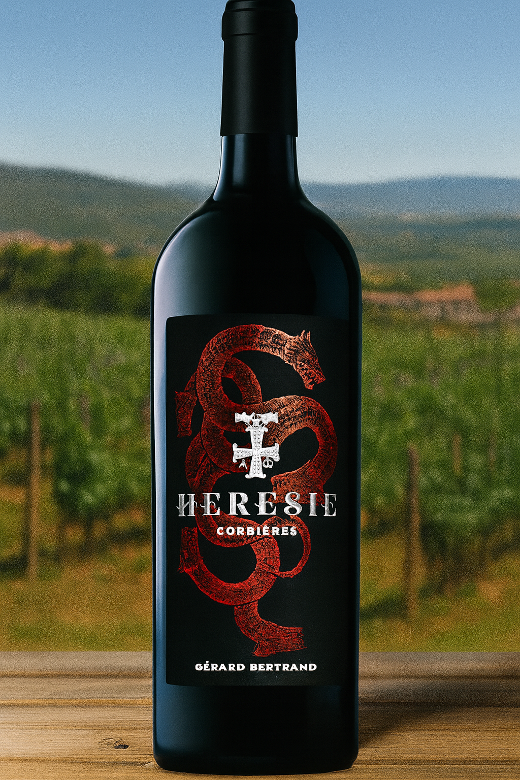 Gérard Bertrand, voormalig rugbyspeler en inmiddels icoon van de Languedoc, staat bekend om zijn biodynamische wijnaanpak en zijn drang om de regio wereldwijd op de kaart te zetten. Met Hérésie brengt hij een eerbetoon aan het historische erfgoed van de Corbières én aan de rijke terroirs van Zuid-Frankrijk. De combinatie van oude wijnstokken, mediterrane zon en frisse zeewind zorgt voor een wijn die kracht en elegantie verenigt. Het is een wijn met een verhaal, bedoeld om indruk te maken.