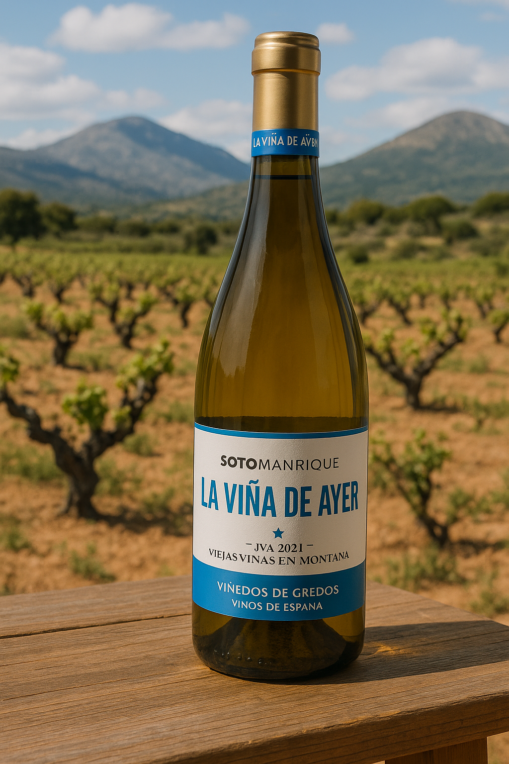 De naam La Viña de Ayer, letterlijk “de wijngaard van gisteren” eert de oude wijnstokken van de zeldzame druif Albillo Real, een inheemse variëteit die ooit bijna verloren ging. Dankzij pioniers als Bodega Soto Manrique beleeft deze druif nu een opleving, en toont ze wat Spaanse terroirs te bieden hebben buiten de bekende regio’s.